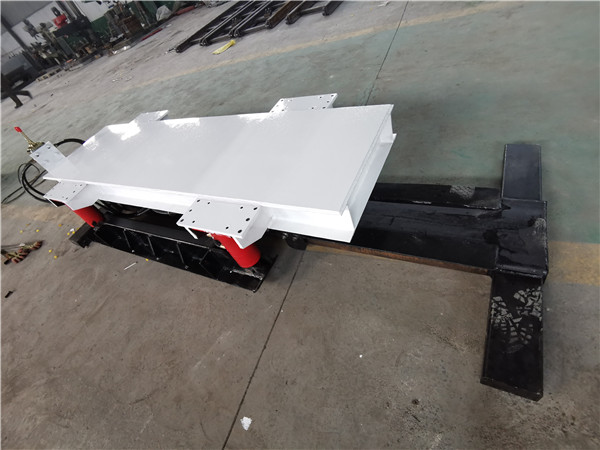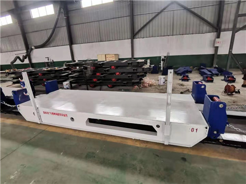 自移式設備列車組通過設置的操縱閥組進行設備列車的前移。自移式設備列車組設備推進時,操作制動裝置手柄,將設備列車后端的平板車制動裝置打開,使后端平板車處于制動狀態(tài),前段平板車制動裝置處于待制動狀態(tài),操作行走油缸,使行走油缸活塞桿伸出,推動前段車體沿軌道前移,待行走油缸完全伸出后,操作前段車體制動裝置手柄,將前移后的平板車制動器打開,同時將后端處于制動狀態(tài)的車體恢復待制動狀態(tài),操作行走油缸手柄將行走油缸活塞收回,后端車體沿軌道前移,前移后后端平板車制動裝置打開,完成一次推移動作,依次循環(huán)可達到自移式設備列車組隨工作面推進工作。